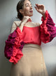 Eleva tu estilo con esta blusa única que combina elegancia y frescura. Su diseño en tono marfil se realza con mangas voluminosas en colores negro y café, creando un contraste moderno que destaca tus hombros. Confeccionada en una tela suave y fresca, es perfecta para llevar en cualquier ocasión, desde un look casual hasta una salida especial.