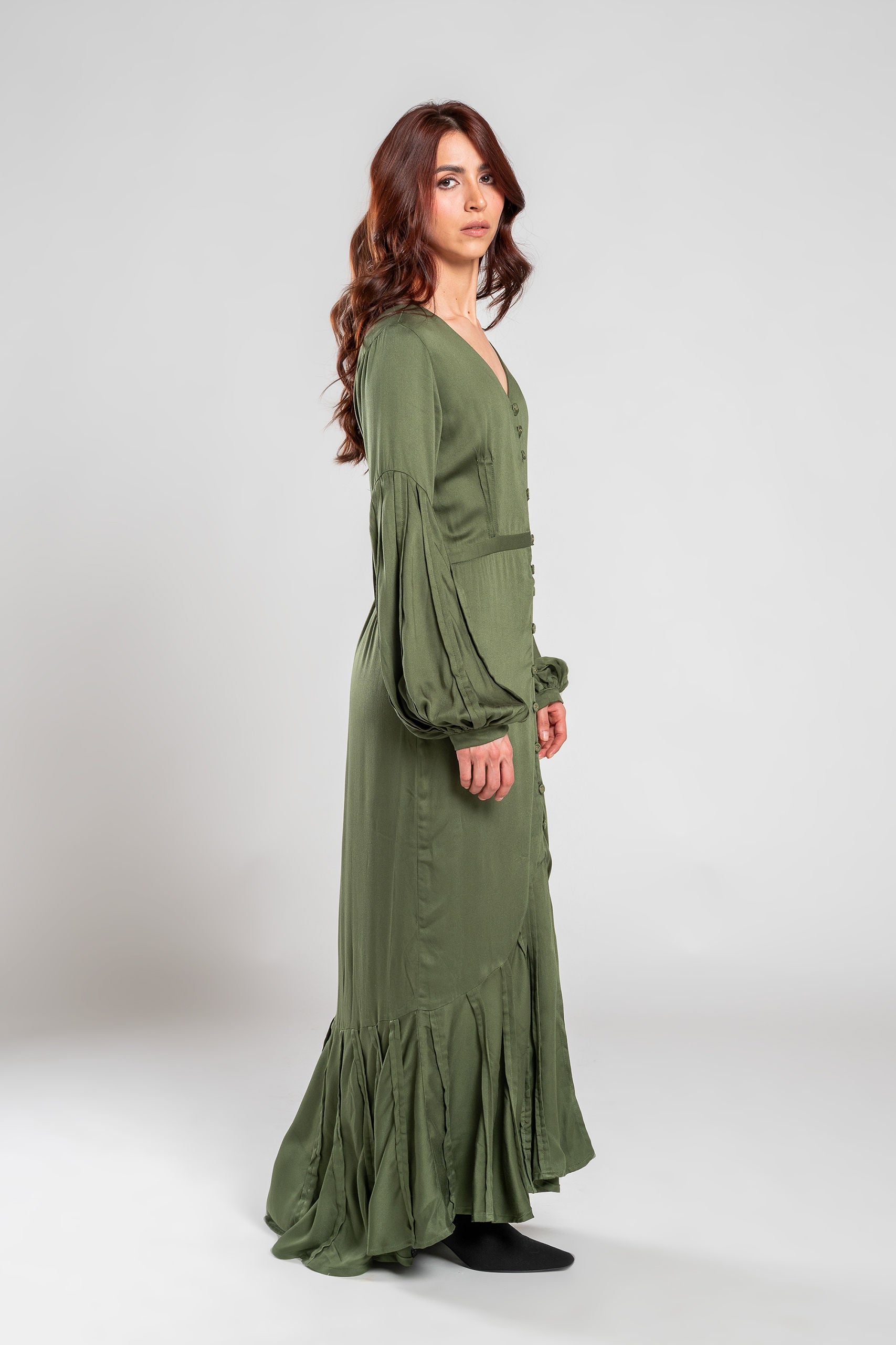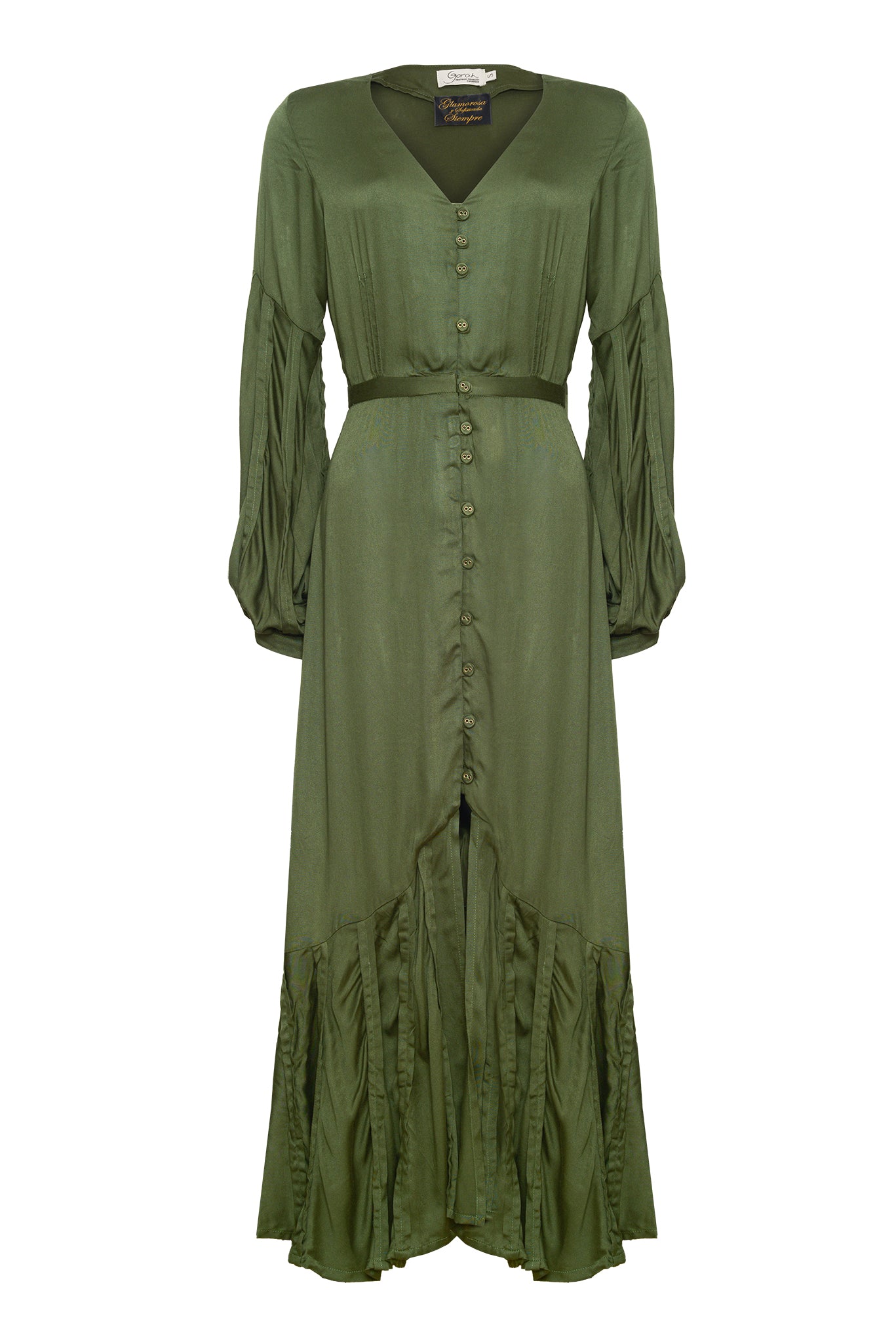 Este vestido está diseñado para mujeres que desean sentirse seguras, femeninas y auténticas. Su silueta fluida estiliza con ligereza, mientras el escote en V aporta un toque elegante y sofisticado. Los botones frontales recorren la prenda como símbolo de decisión y estilo, convirtiéndolo en un vestido con propósito.