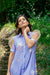 Este vestido lila presenta una manga globo en tull color champagne y un sutil estampado evocando la naturaleza. Plasmamos: Los hongos, las flores y los pájaros. Una silueta en Línea A, comoda y muy versátil.