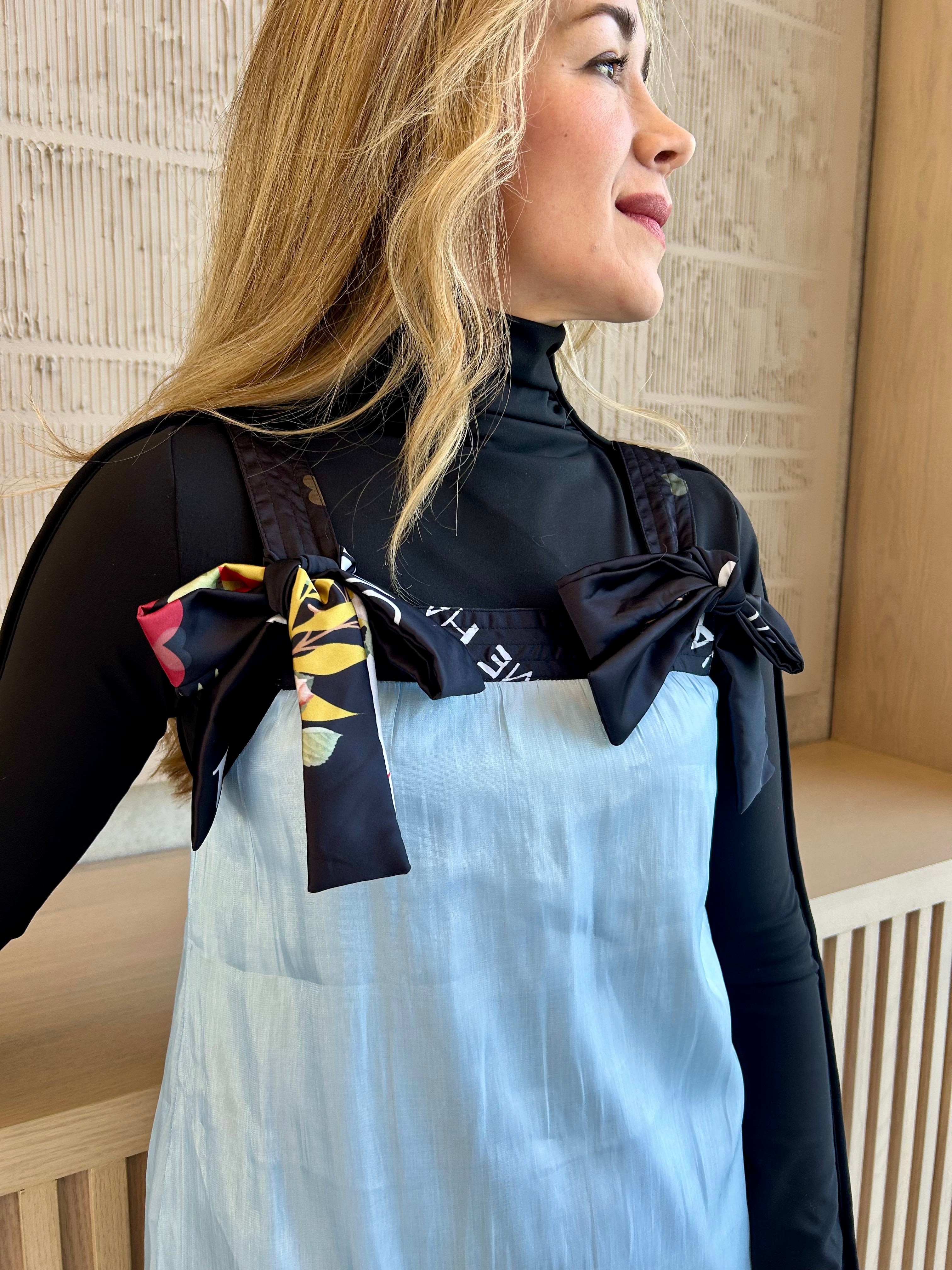 VESTIDO TALEGO AZUL CON NEGRO MADAM